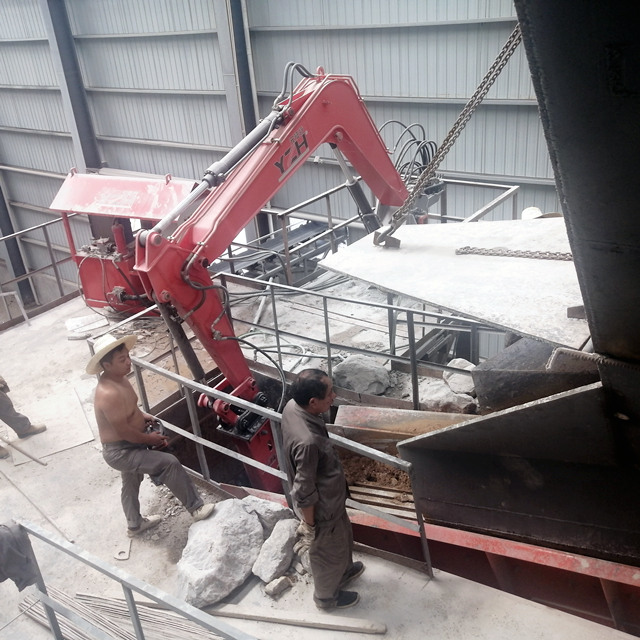 Khi đá bị kẹt hoặc vật liệu quá khổ rơi vào, người vận hành sẽ kích hoạt hệ thống cần cẩu từ xa.